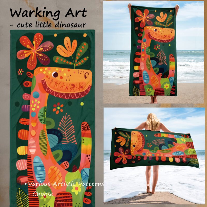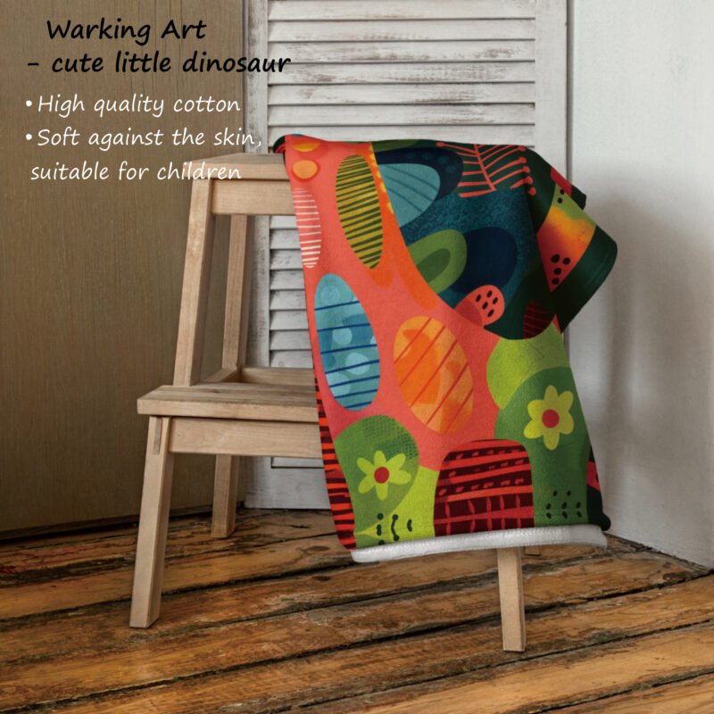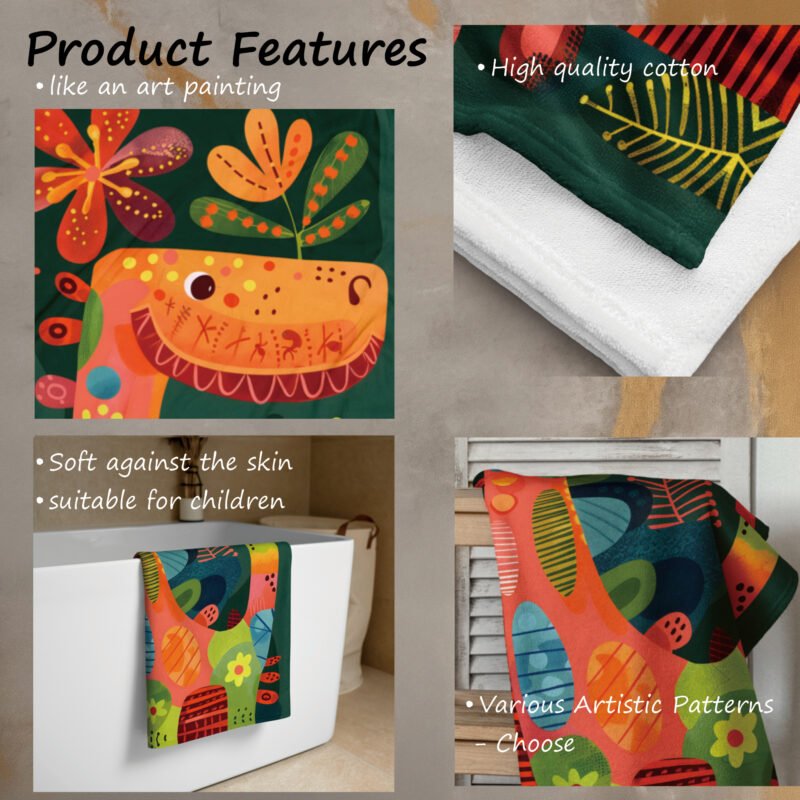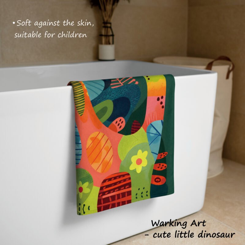 Extra Large Artistic Cotton Towel “ Cute Dinosaur”, Gift for Children
